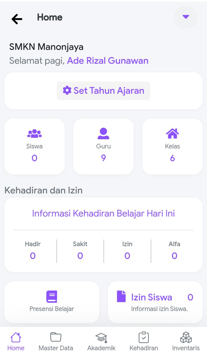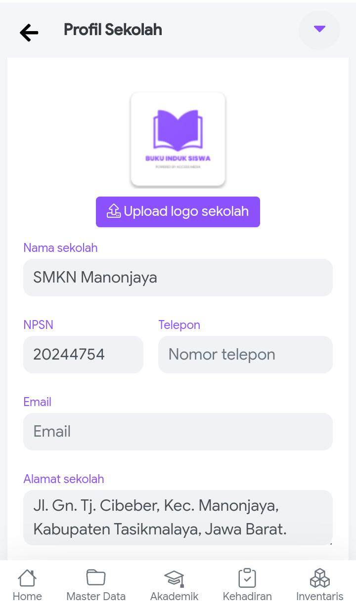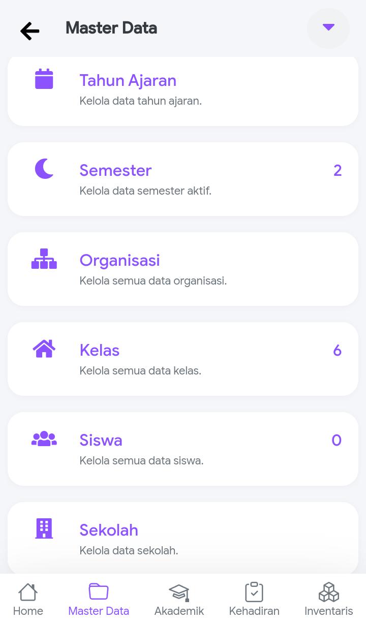 Berikut beberapa tampilan fitur yang ada pada Aplikasi Data Sekolah