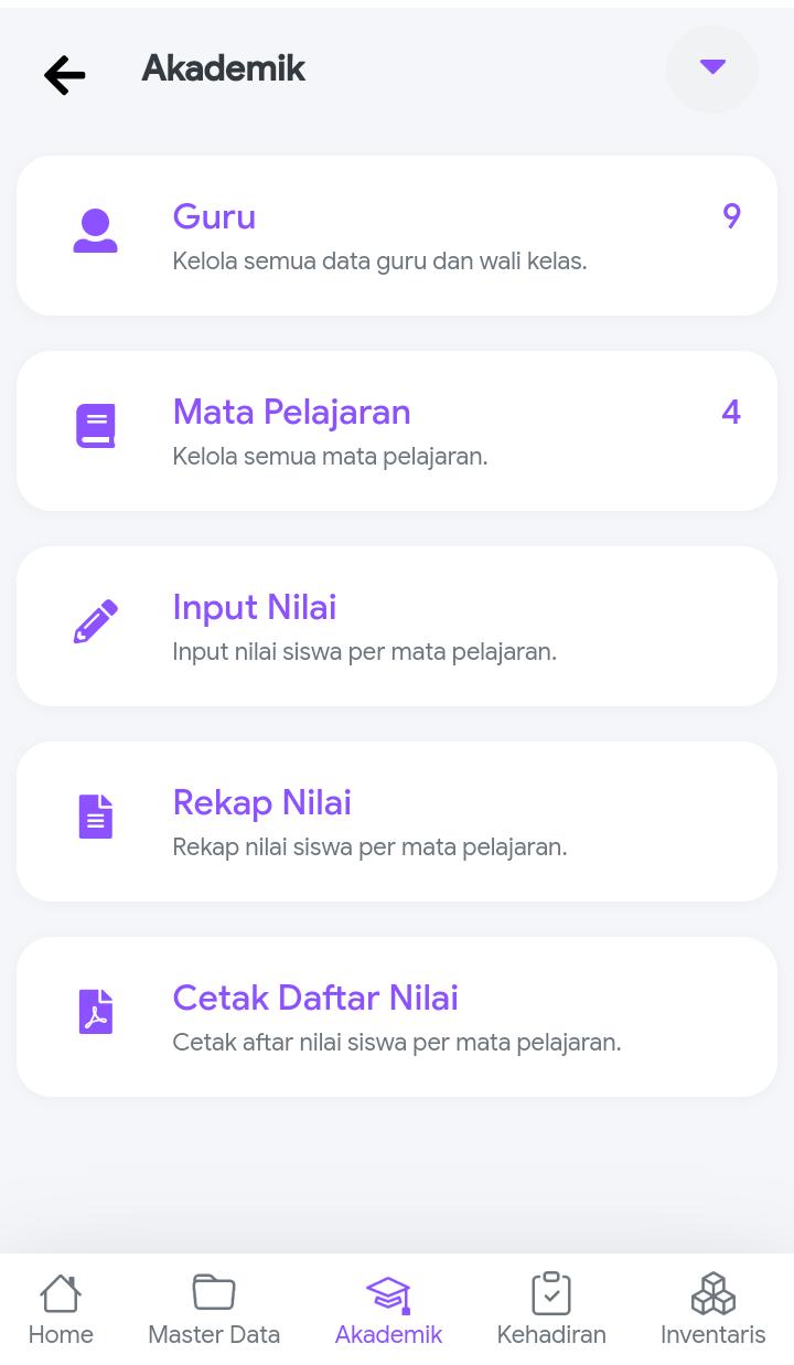 Untuk pengelolaan data siswa, riwayat kelas, dan setting wali kelas. Juga sudah dilengkapi dengan pengelolaan data alumni dan penelusuran sekolah lanjutannya.