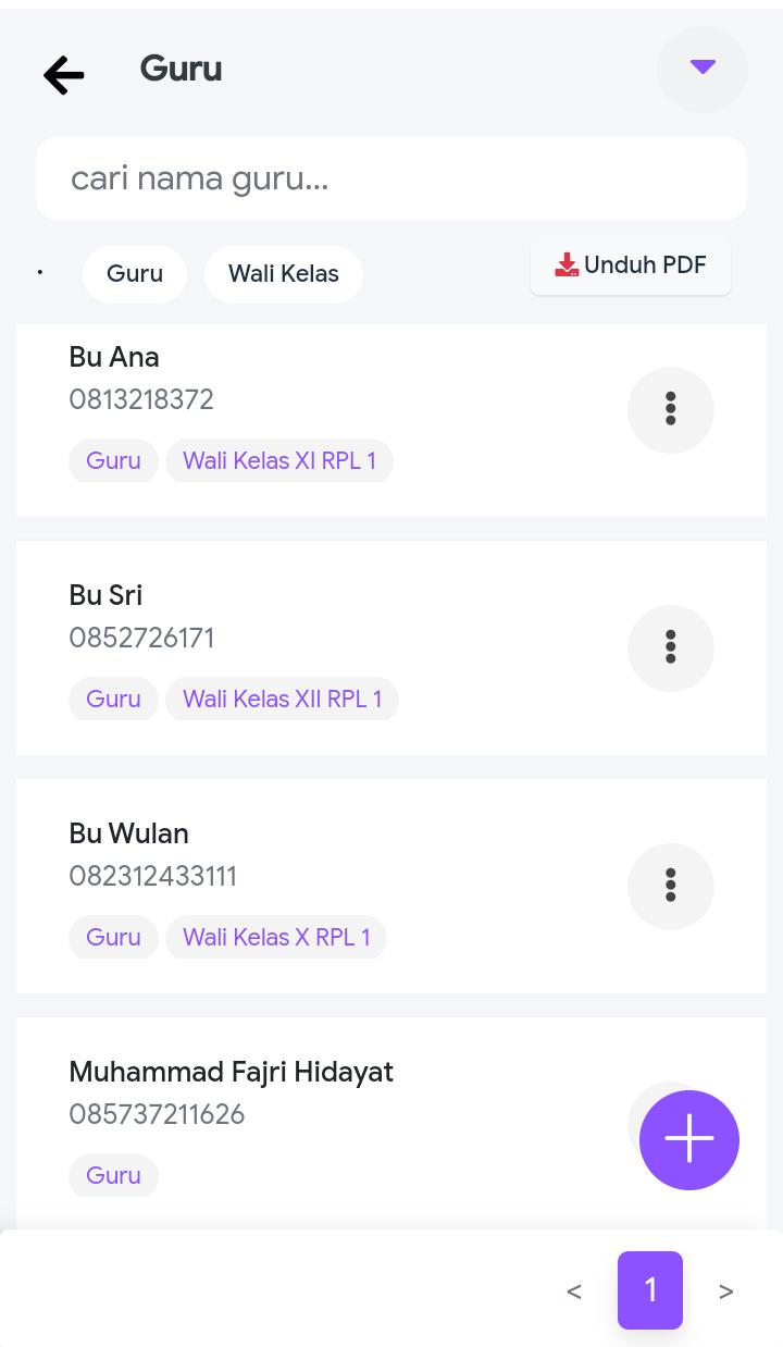 Guru bisa melakukan pencatatan kehadiran siswa di kelas dari Handphone sehingga data kehadiran siswa bisa dimonitor secara realtime baik oleh kepala sekolah maupun orang tua.
